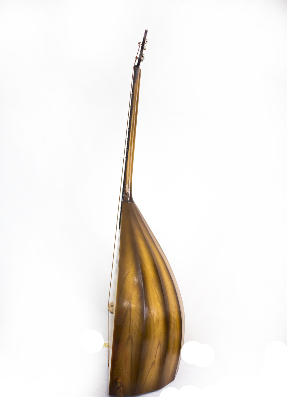 Трех струнный щипковый музыкальный инструмент. Корпус, подставка изготавливается из древесины твёрдых пород бука.Накладка и головка изготавливается из древесины твёрдых пород чёрного палисандра.Дека из ель, длина деки -86см,